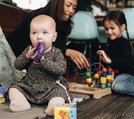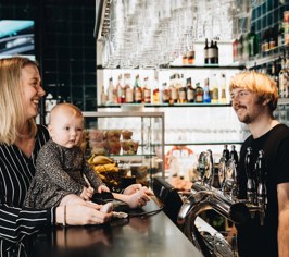 Vi har højstole, børnevenlig mad og drikke samt puslefaciliteter. Og skal du have varmet babymad eller sutteflasker, kan vi også hjælpe med det. Du er velkommen til at amme dit barn - og der er plads til at tage barnevognen med helt ind. Der er nemlig ramper både ved indgangen fra gaden og indgangen til caféen.