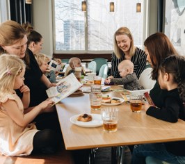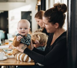 At vi er en børnevenlig café betyder, at der selvfølgelig også skal være plads til alle mødrene. I kan mødes hos os i stedet for at mødes privat. Ligesom det er oplagt at lægge et besøg ind, hvis I ønsker at få noget mad eller drikke efter I har været i byen til diverse børneaktiviteter.
