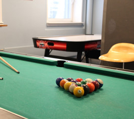 I underetagen har vi et hyggeligt fælles opholdsrum med TV, bordfodbold, pool, air hockey og bordtennis. Går I op ad trappen, lander I i cafeen BAR50, hvor der er rig mulighed for at chille foran et af vores TV eller banke hinanden i et af vores store mange brætspil. Der er også masser af stikkontakter til at lade mobilen op og gratis WIFI, hvis man bare har brug for at stene lidt på sin telefon.