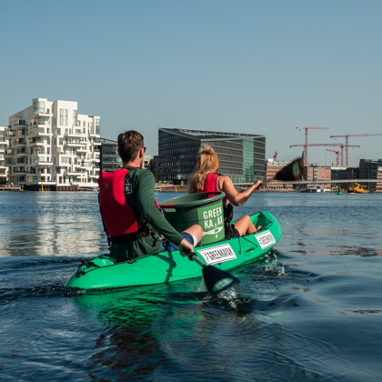 Hos GreenKayak kan du leje deres gratis kajakker mod to betingelser – du bruger din tid i kajakken på at samle affald op fra havet samt at du deler din oplevelse på sociale medier (#GreenKayak). På den måde kan du både nyde en gratis kajaktur og hjælpe det københavnske havmiljø.