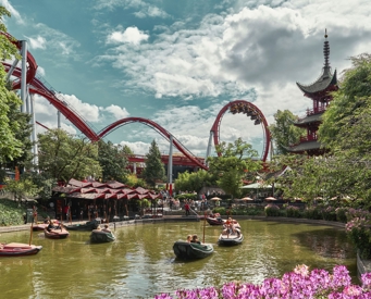 Den smukke have kombinerer nostalgisk charme og moderne underholdning og udgør en klassisk forlystelsespark med elegant havearkitektur.