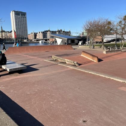Dette skateareal er velegnet til skatere på alle niveauer, og selvom udvalget af faciliteter er begrænset, kan både rampen og basketballbanen give mulighed for nogle hyggelige timer ved Islands Brygge.