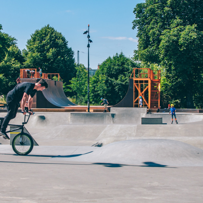 Fælledparken Skatepark er med sine 4000 m2, en af de største skateparks i Europa og mest populære destinationer for skatere i alle aldre og færdighedsniveauer i København.