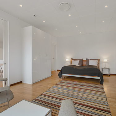 Our superior apartment is a 119 m2 3-bedroom apartment with two bedrooms, a large kitchen with dining area, a spacious bathroom with bathtub and shower, and a washing machine. The apartment is located on the 17th floor with fantastic views over Copenhagen.