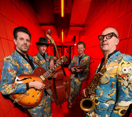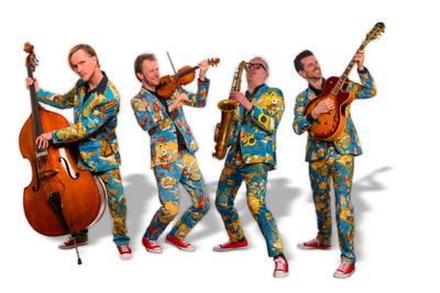 The band features violinist Jelle van Tongeren, saxophonist Thomas Streutgers, guitarist Michael Seraus, and bassist Ronald de Jong. Together, they create an unforgettable atmosphere, where the audience becomes part of the show, laughing and dancing along.