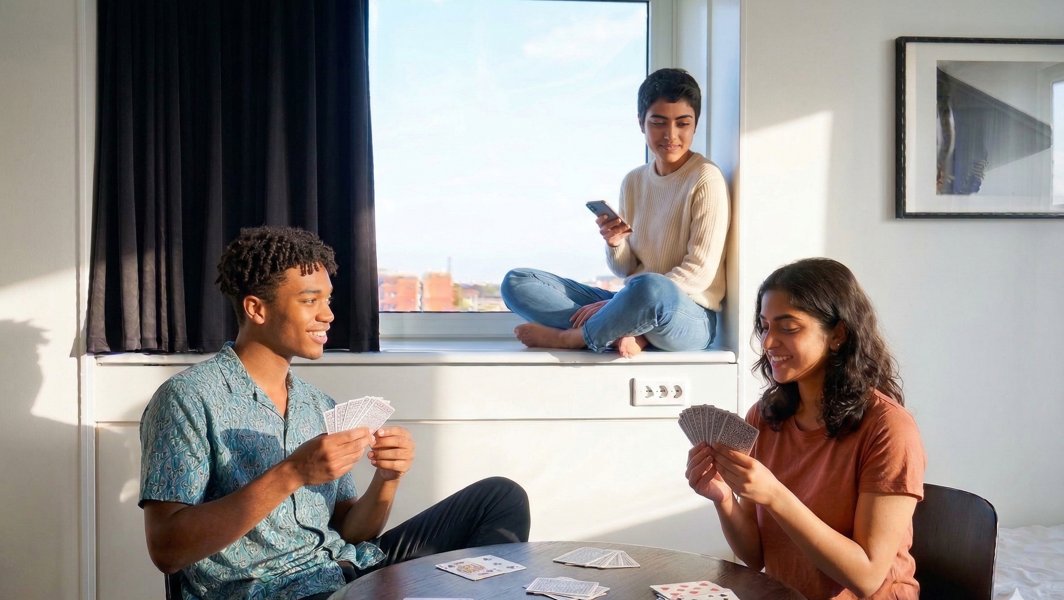 On the lower floor, we have a cozy common room with a TV, foosball, pool, air hockey, and table tennis. If you head up the stairs, you'll find yourself in the café BAR50, where you can chill in front of one of our TVs or challenge each other to one of our many board games. There are also plenty of power outlets to charge your phone and free Wi-Fi if you just need some downtime on your phone.