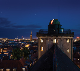 The impressive tower on one of Copenhagen's oldest shopping streets originally served as an observatory, but today, astronomers have long since left the tower. However, the observatory is still frequently used by amateur astronomers who utilize the tower to observe stars, as well as by the tower's many guests who are captivated by the fantastic view over Copenhagen.