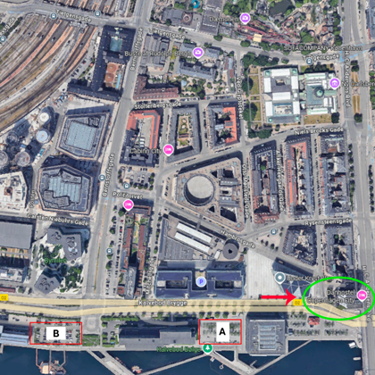 - Vennligst følg OPARKOs regler og parker kun på oppmerkede plasser. Billetten gjelder for parkering i Kalvebod Brygge 3-5 P-hus (øverste etasje) og Kalvebod Brygge 5-7. Merk at parkeringskjelleren har en maksimal høyde på 1,95 meter.