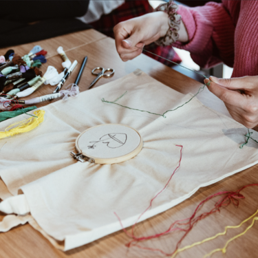 Upplev glädjen att skapa med händerna i en rolig och avkopplande broderiverkstad där du får lära dig att skräddarsy ditt eget föremål med en vacker illustration. Konstformen av broderi innebär att dekorera ett tygstycke med stygn som sys direkt på det med hjälp av en broderibåge och en nål.