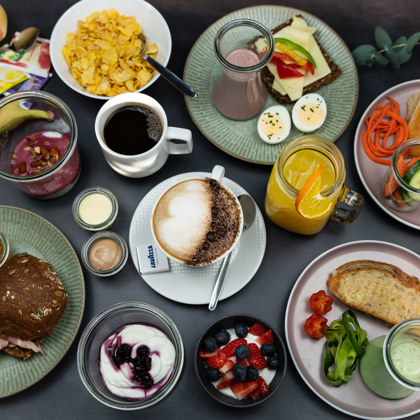 I caféet serveras en frukostbuffé varje dag, och lunch och middag kan arrangeras enligt överenskommelse.